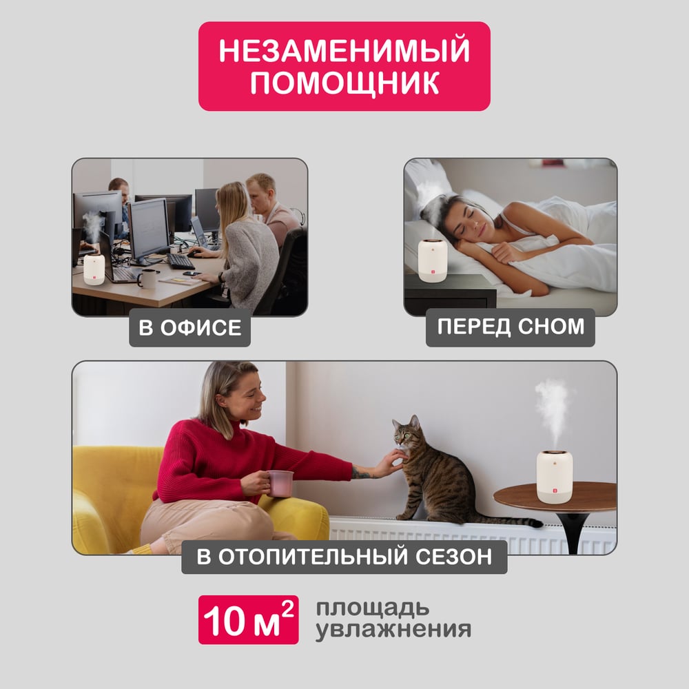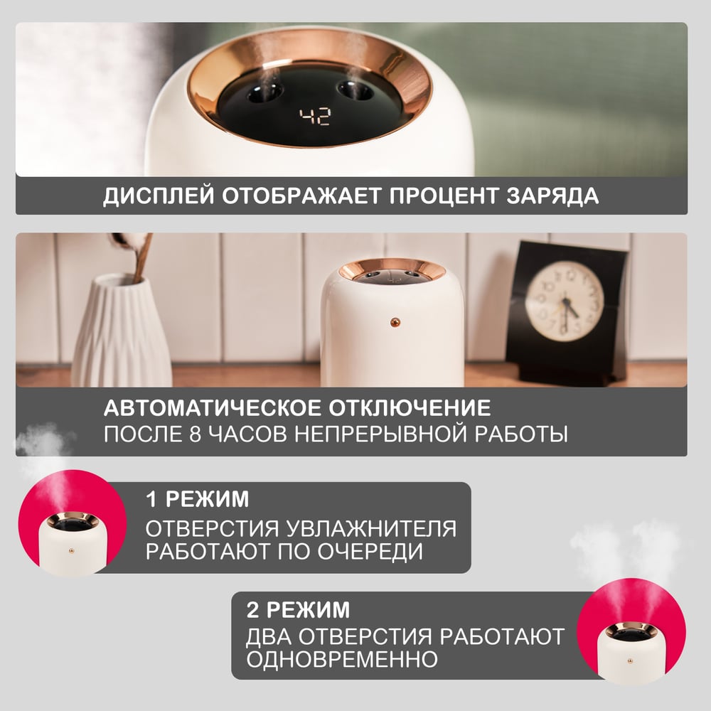 Аккумуляторный увлажнитель воздуха Halsa 1л, до 5 часов HLS09 HLS-HU-101W