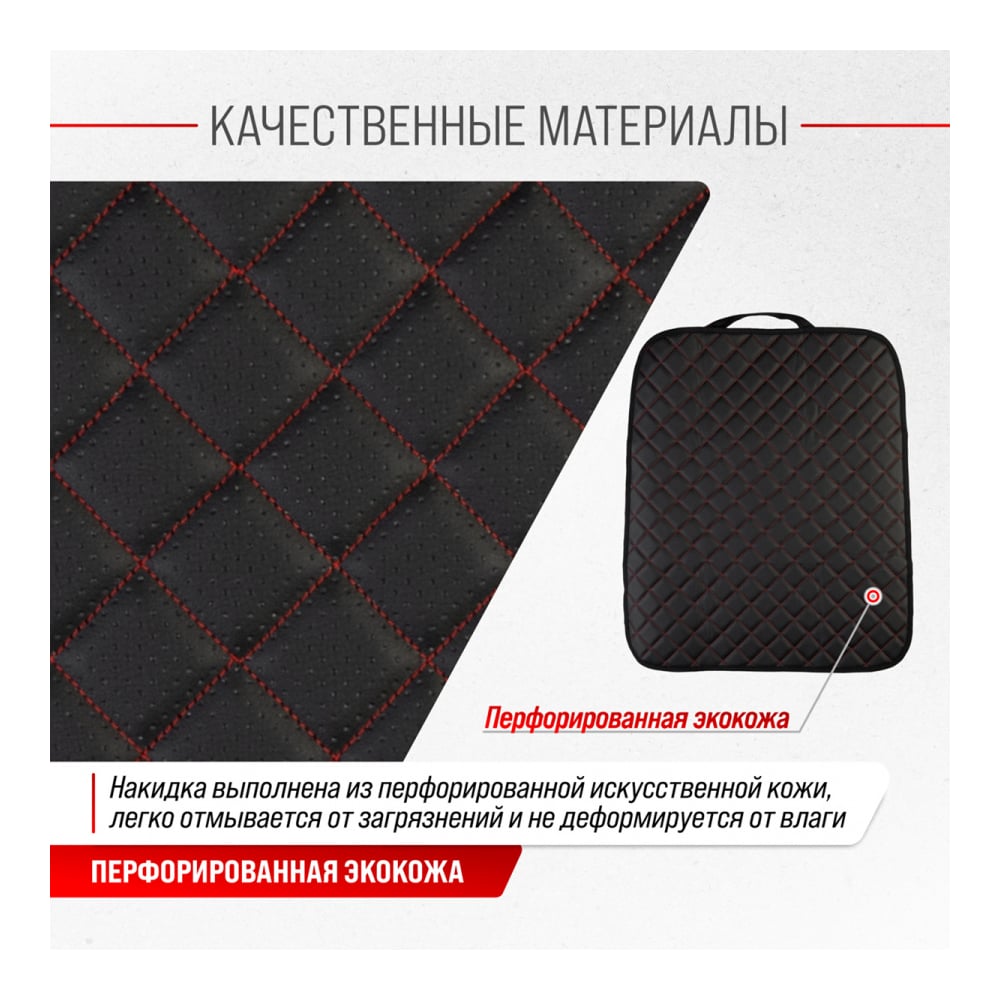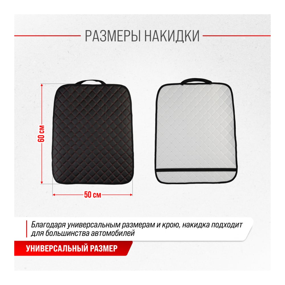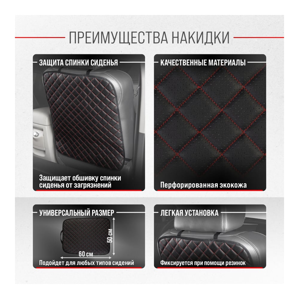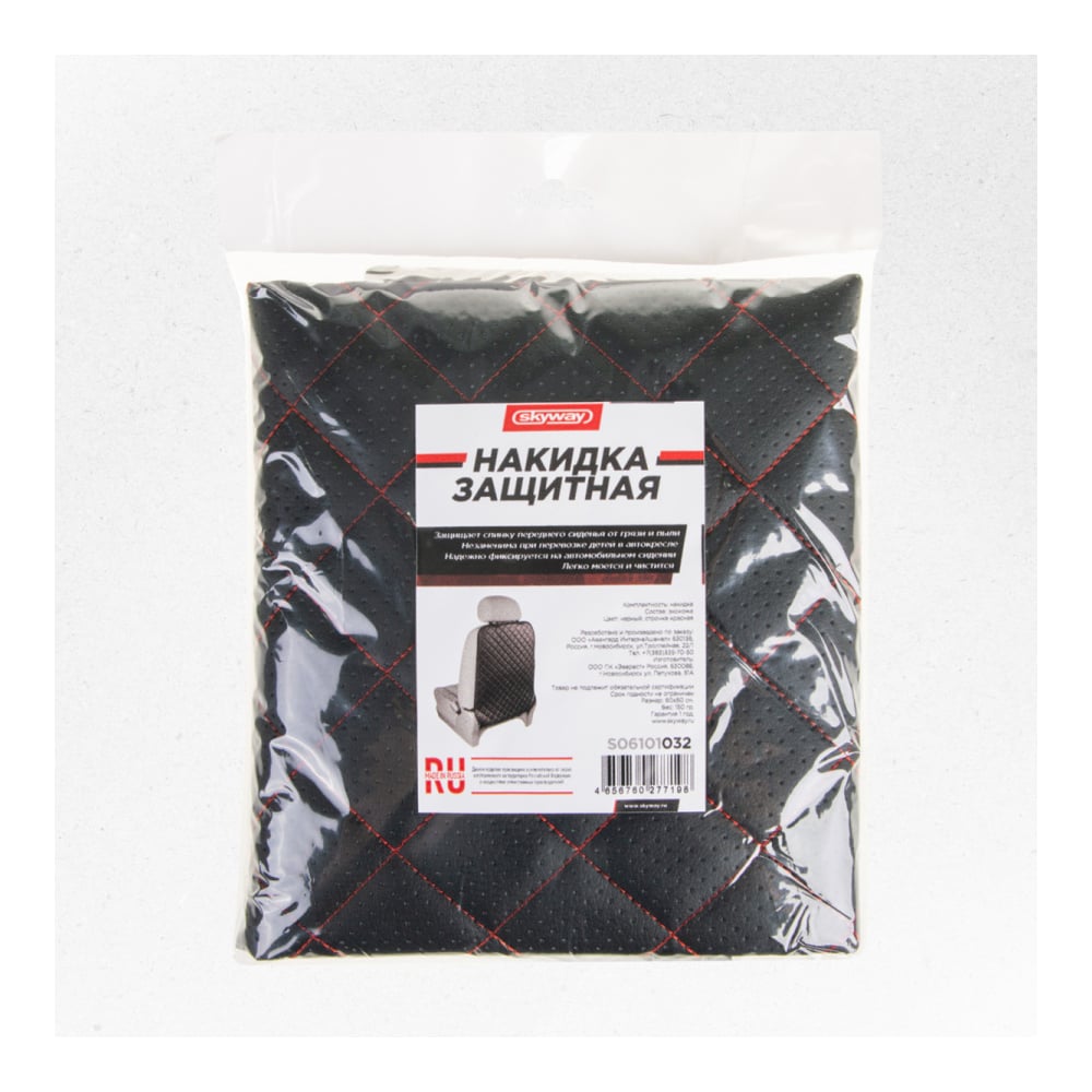 Защита спинки сиденья SKYWAY 60х50 см, кожа иск. перф., черная, строчка красная S06101032
