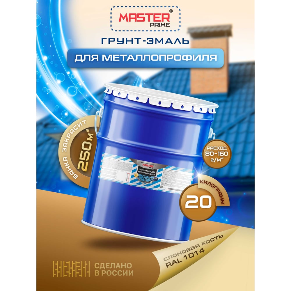 Грунт-эмаль для металлопрофиля Master Prime RAL 1014 слоновая кость, 20 кг 4300006955