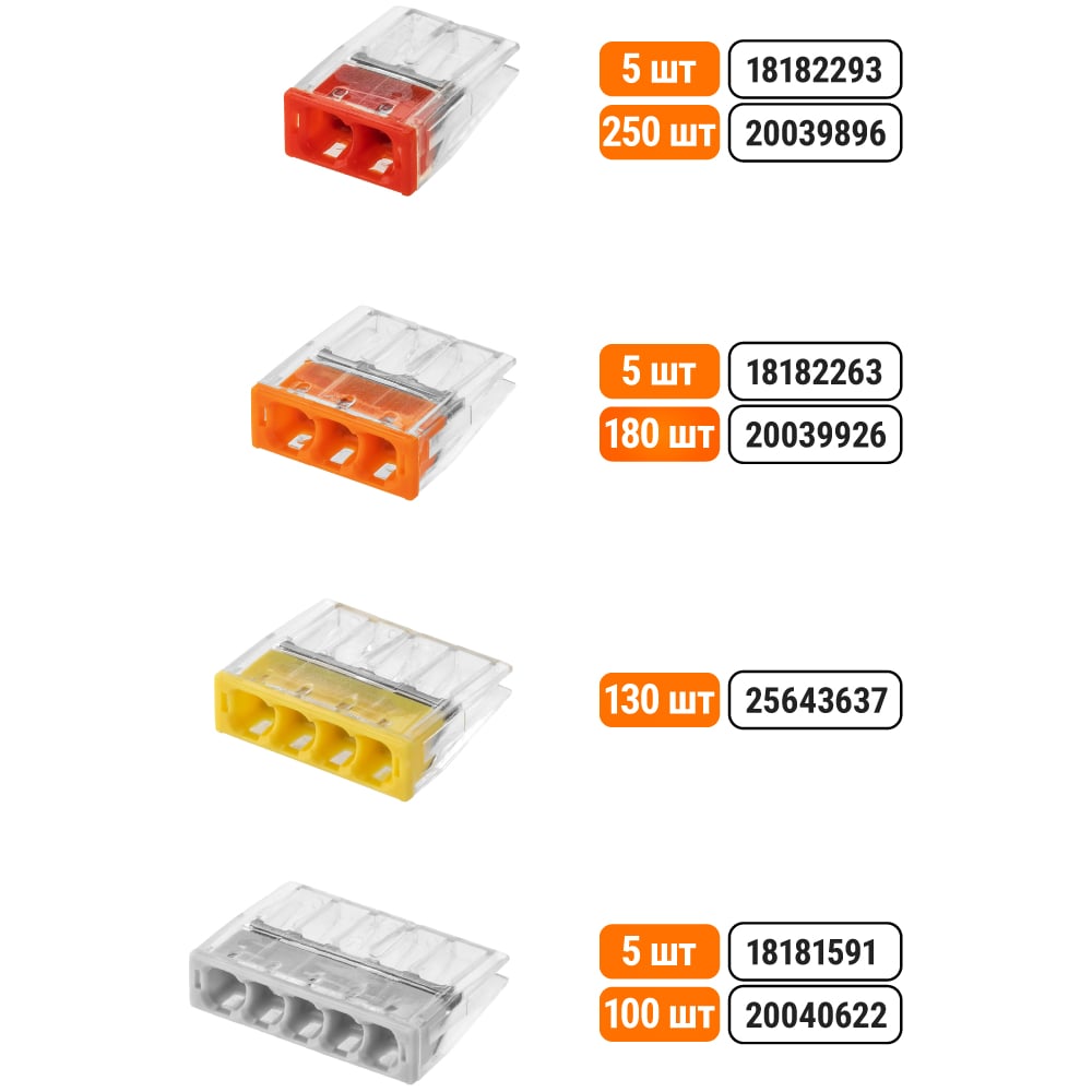 Клеммы для проводов универсальные строительно- монтажные (2,5мм2) с пастой TDM ELECTRIC в упаковке 5 штук SQ0517-0127