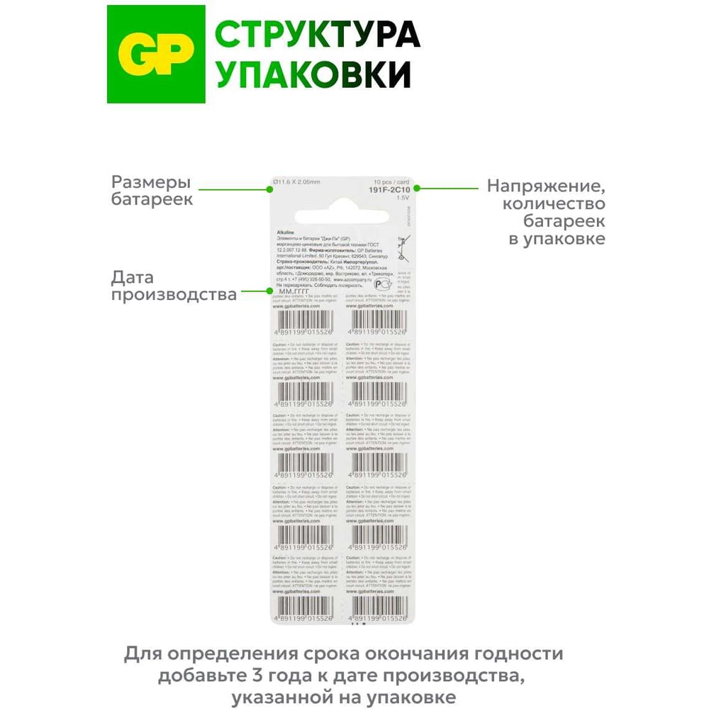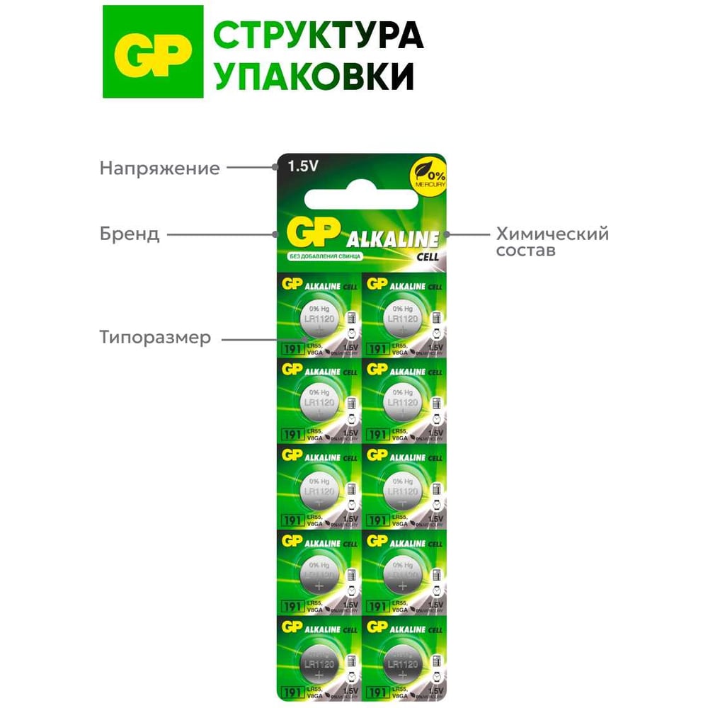 Алкалиновые пуговичные батарейки GP 191A - 10 шт., 191FRA-2C10 191FRA-2C10 15920398
