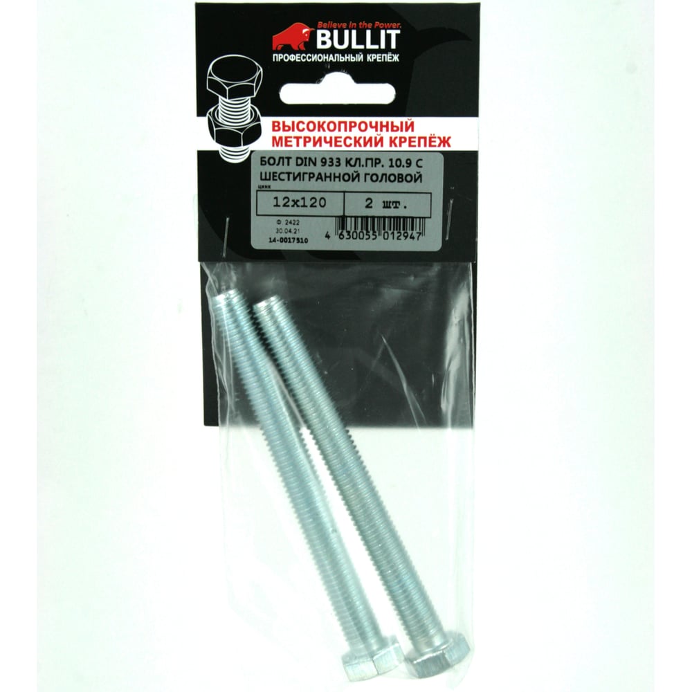 Болт с шестигранной головой Bullit DIN 933, 10.9, M8x120, 2 шт 14-0017660