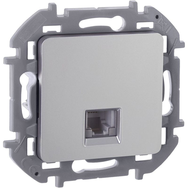 Розетка телефонная для скрытого монтажа Inspiria, разьем RJ11, цвет "Алюминий". Применяется для быстрого подключения к сетям телекоммуникаций (например, к телефонным сетям общего пользования).