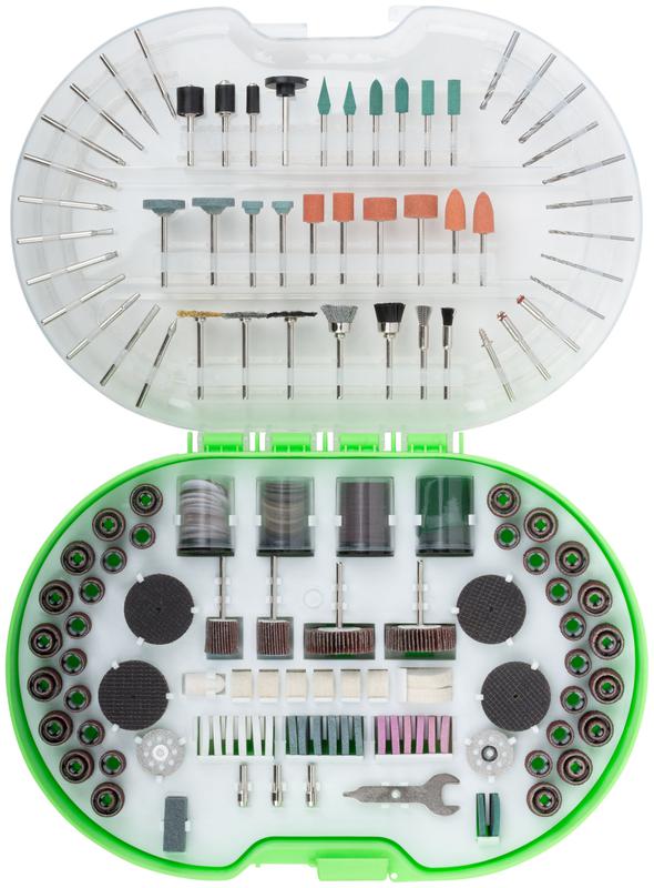 Набор насадок для гравировальных машин FIT IT позволяют производить резку, шлифовку, зачистку и полировку изделий из различных материалов. Оснастка удобна в транспортировке и хранении, благодаря прочному пластиковому кейсу. Набор включает в себя 278 предметов: трубки наждачные, круги войлочные, насадка войлочная, круги резиновые полировальные, круги шлифовальные лепестковые, круги шлифовальные абразивные, круги наждачные, шарошки резиновые полировальные, шарошки абразивные, шарошки алмазные, круги отрезные абразивные, круги отрезные алмазные, сверла по металлу (HSS), корщетки нейлоновые, корщетки стальные, патроны цанговые, паста полировальная, камень правильный, держатели для полировальных насадок и наждачных трубок.