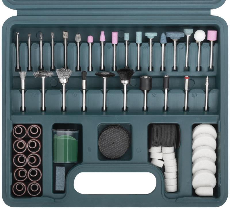 Набор насадок для гравировальных машин FIT IT позволяют производить резку, шлифовку, зачистку и полировку изделий из различных материалов. Оснастка удобна в транспортировке и хранении, благодаря прочному пластиковому кейсу. Набор включает в себя 100 предметов: шарошки по металлу и камню, корщетки-насадки из стальной волнистой проволоки, корщетки-насадки нейлоновые, держатели для шлифовальных и отрезных мини-кругов; держатель для фетровых кругов; фетровые круги; шлифовальные мини-круги; отрезные мини-круги; паста полировочная; шлифовальные кольца. С помощью насадок можно обрабатывать изделия или заготовки в труднодоступных местах. Разнообразие форм насадок обеспечивает широкий спектр применения набора.