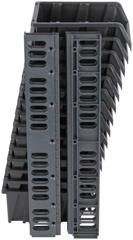 Используется для навешивания лотков и органайзеров с метизами и небольшими инструментами. Имеет возможность соединения нескольких лотков одинаковых размеров, а также размещения лотков на планке-держателе (по 3-4 лотка на планку), входящей в набор. В комплекте 15 лотков и 4 планки. Материал: пластик.