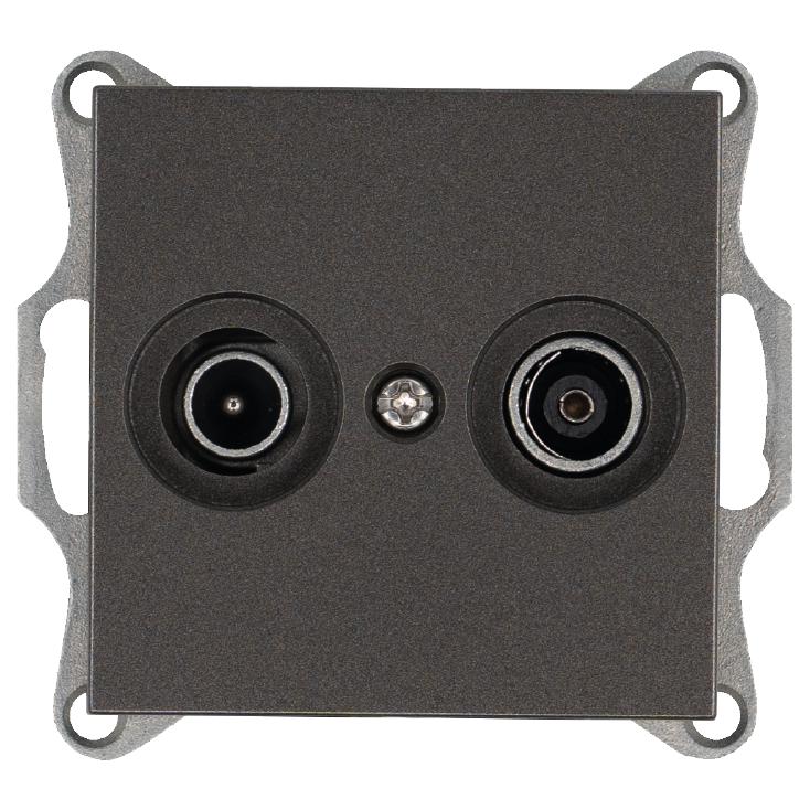 Розетка телевизионная проходная TV + FM 2-м Ф9.5мм механизм мокко Jasmart G6205Z
