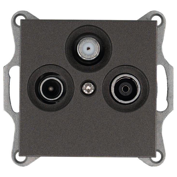 Розетка телевизионная проходная TV + FM + SAT 3-м Ф9.5мм механизм мокко Jasmart G6207Z