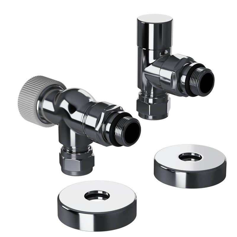 Термостатические наборы серии Design поставляется в комплектации: клапан термостатический для установки на подающий трубопровод, запорный клапан для установки на обратный трубопровод.