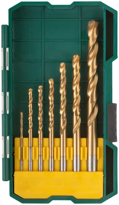 Набор сверл HSS по металлу 2; 3; 3.5; 4; 5; 6; 8мм покрытие титан. (уп.7шт) FIT 34215
