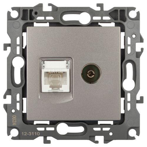 Розетка компьютерная + телевизионная Эра12 12-3110-16 RJ45 + TV титан Эра Б0065646
