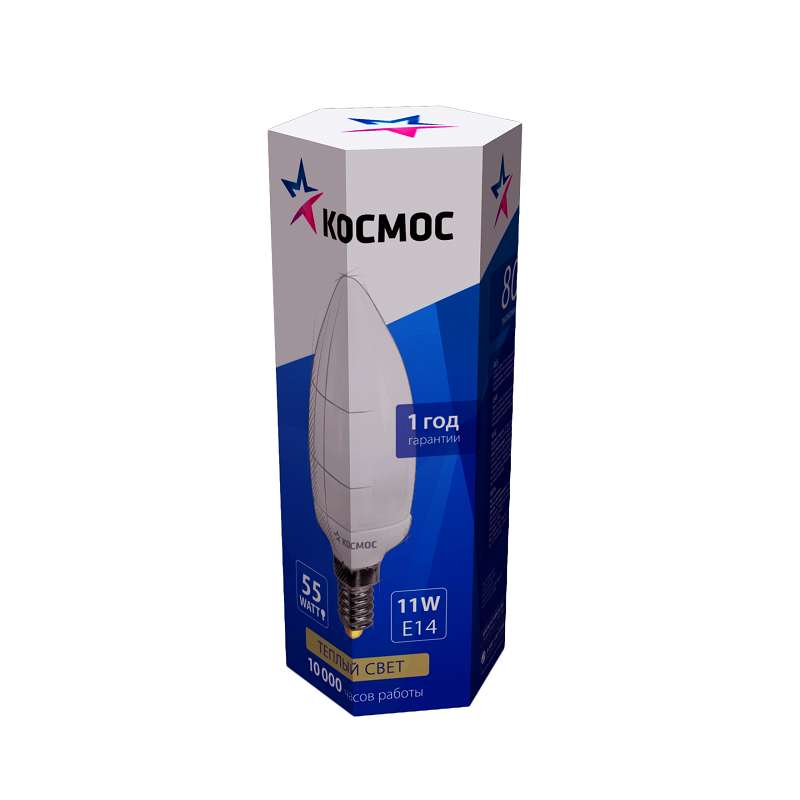 Лампа люминесцентная компакт. CS 11Вт E14 свеча 2700К СВ КОСМОС lksmCS11wE1427