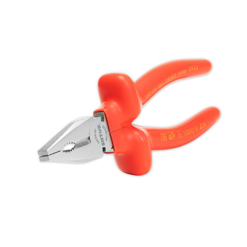 Рабочая часть диэлектрических пассатижей SHTOK 1000В 160 мм 08203, выполненная из хром-ванадиевой стали, увеличивает прочность инструмента. Удобство эксплуатации