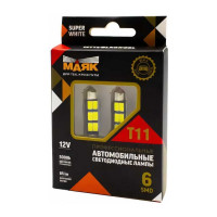 #1489824 SKYWAY Автолампа диод T11 12V 6 SMD Блистер c цоколем 1-конт Белая компл. 2 шт. Салон, номер S08201354