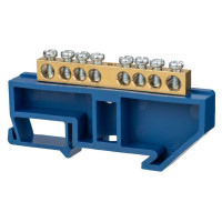 #10059476 Шина EKF PROxima "0" N 10 отверстий, латунь, синий изолятор тип "Стойка", на DIN-рейку, розничный стикер sn0-63-10-sb-r