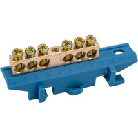 #1911630 Нулевая шина EKF PROxima 0 N, 6х9мм, 12 отверстий, латунь, синий изолятор, тип Стойка, на DIN-рейку sn0-63-12-sb-r