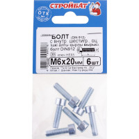 Болт с внутренним шестигранником Стройбат DIN 912 М 6x20 белый цинк 6 шт 206221