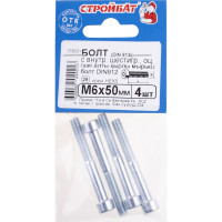 Болт с внутренним шестигранником Стройбат DIN 912 М6x50 белый цинк 4шт 206261