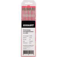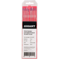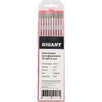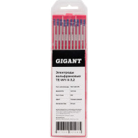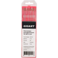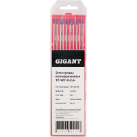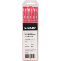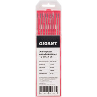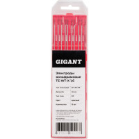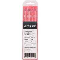 Электроды вольфрамовые (WT-20-175; 1.6 мм; красный; DC; 10 шт) Gigant TE-WT-X-1,6
