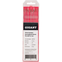 #1441206 Gigant Электроды вольфрамовые WT-20-175 диам. 1,6 мм красный DC упаковка 10 шт TE-WT-1,6