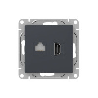Розетка СП Эпика HDMI + RJ45 кат.5 механизм графит EKF UP1-SOG-HDMI-RJ45