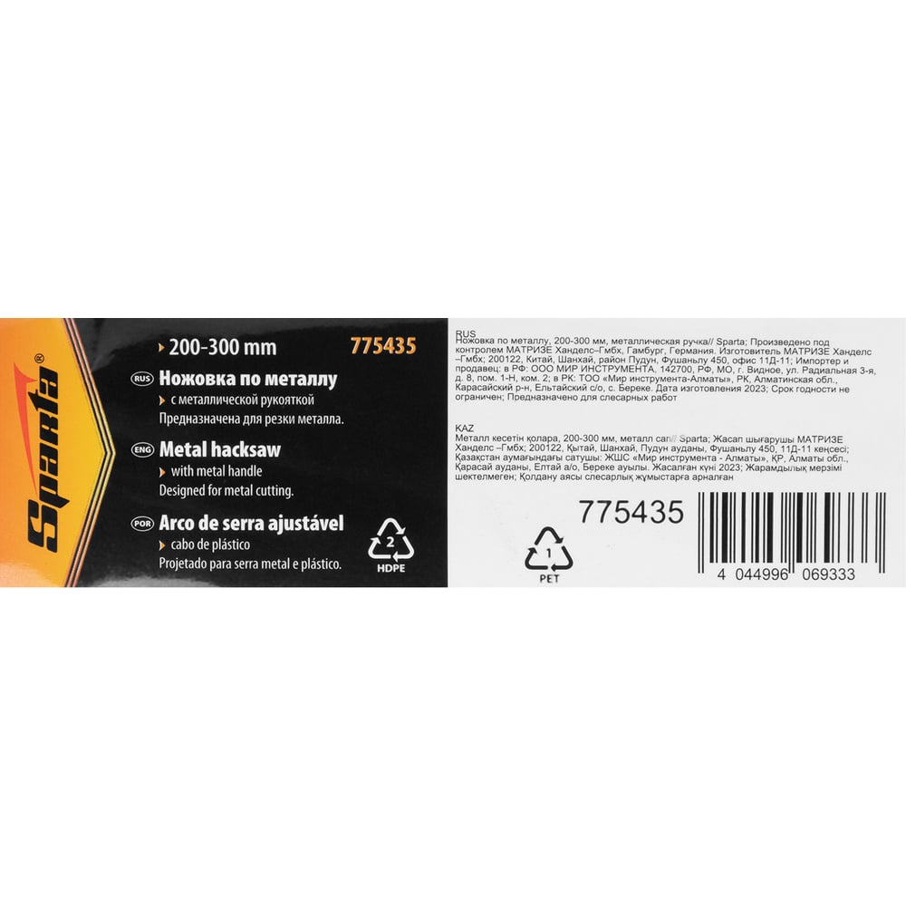 Ножовка по металлу SPARTA 775435