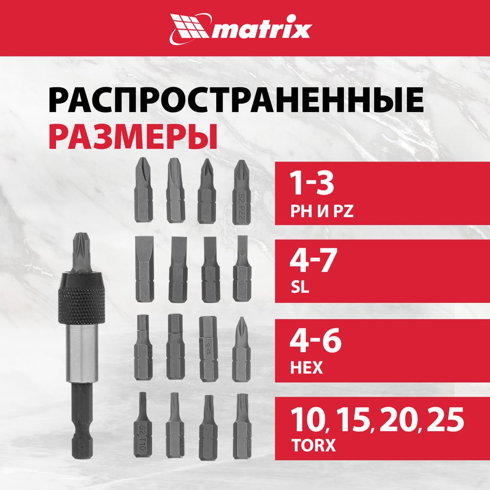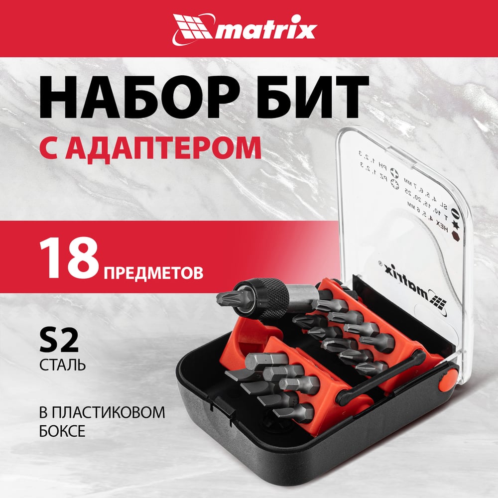 Набор бит и адаптер для бит (18 предметов) в пластиковом боксе MASTER MATRIX 11316