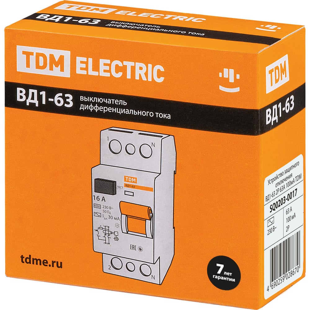 Устройство защитного отключения TDM ELECTRIC ВД1-63 2Р 63А 100мА SQ0203-0017