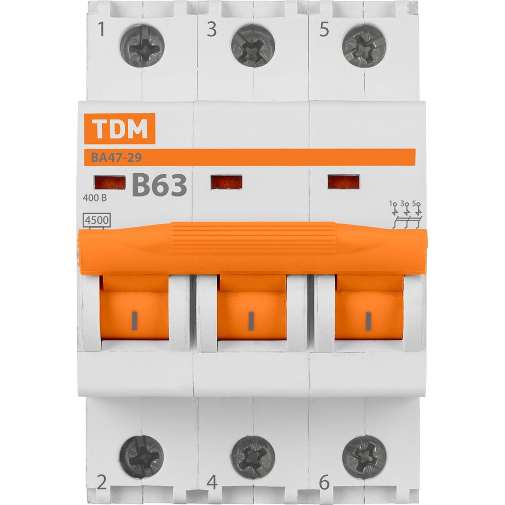 Автоматический выключатель ВА47-29 (3Р; 63 А; 4.5 кА; В) TDM ELECTRIC SQ0206-0048
