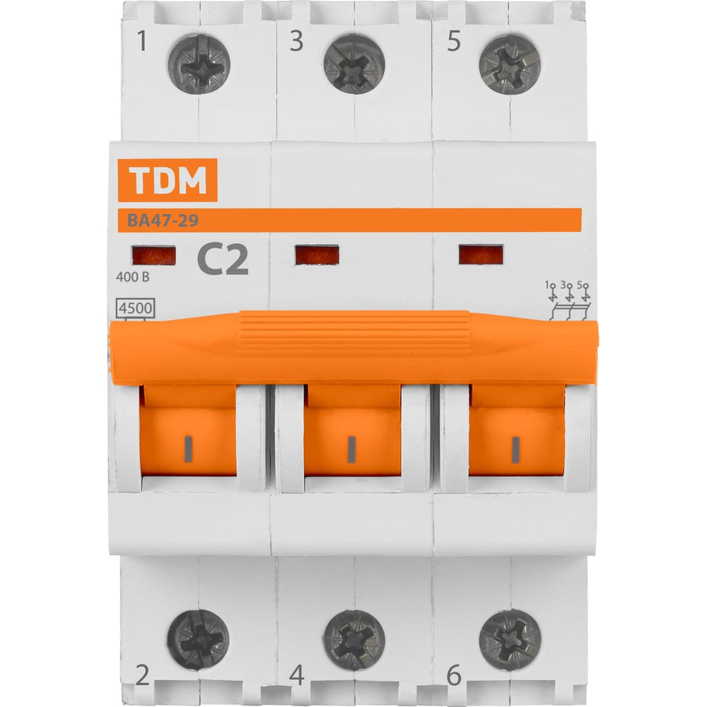 Автоматический выключатель TDM ELECTRIC ВА47-29 3Р 2А 4.5кА С SQ0206-0101