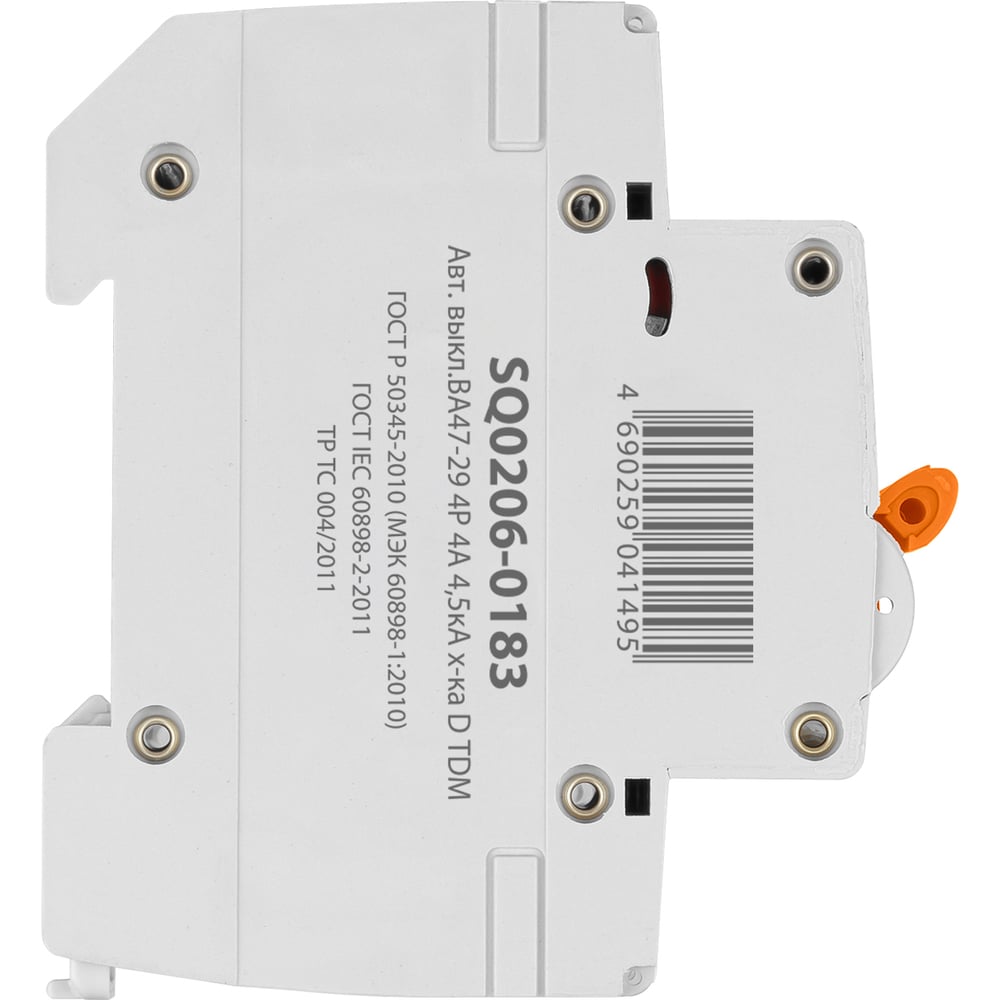 Автоматический выключатель TDM ELECTRIC ВА47-29 4Р 4А 4.5кА D SQ0206-0183