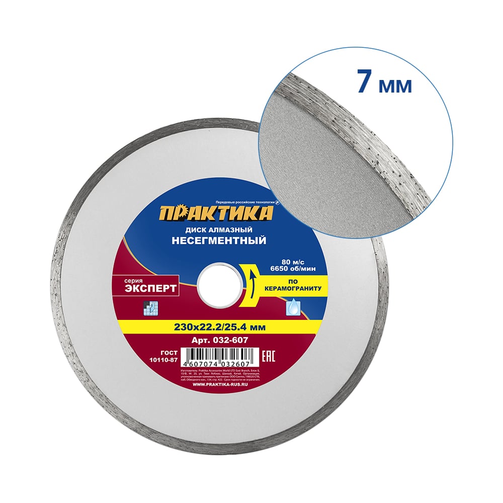 Диск алмазный Эксперт по керамограниту (230х25.4/22.2 мм) ПРАКТИКА 032-607
