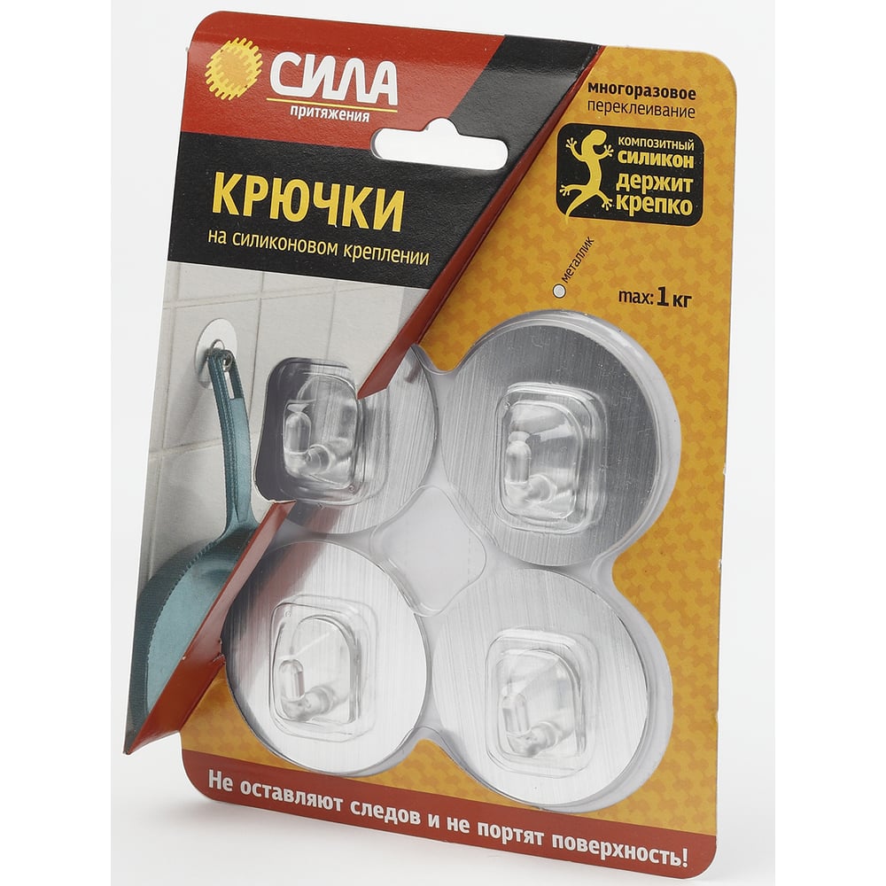 Крючки на силиконовом креплении 5 мм, серебро, до 1 кг, 4 шт. СИЛА Б0002524