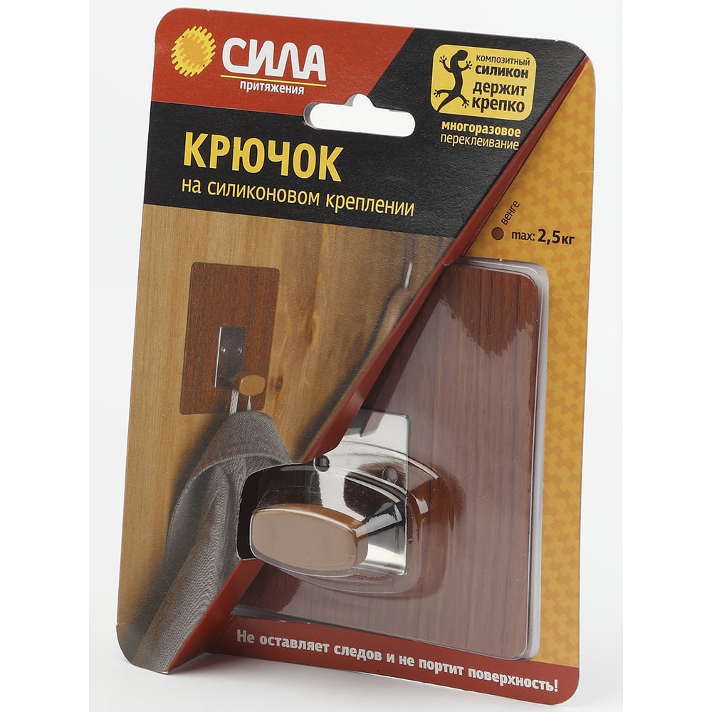 Металлический крючок СИЛА на силикон. крепл. 10х10 см, ВЕНГЕ, до 2,5 кг, СПЕЦ Б0002531