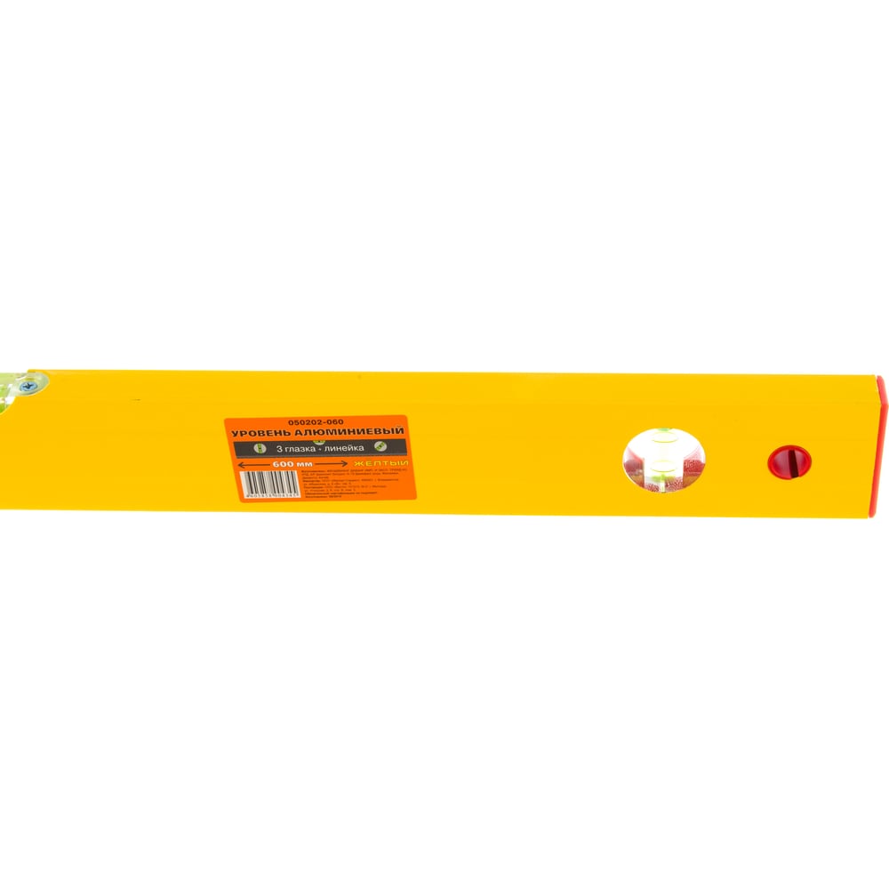 Алюминиевый желтый уровень с линейкой, 3 глазка 600 мм SANTOOL 050202-060