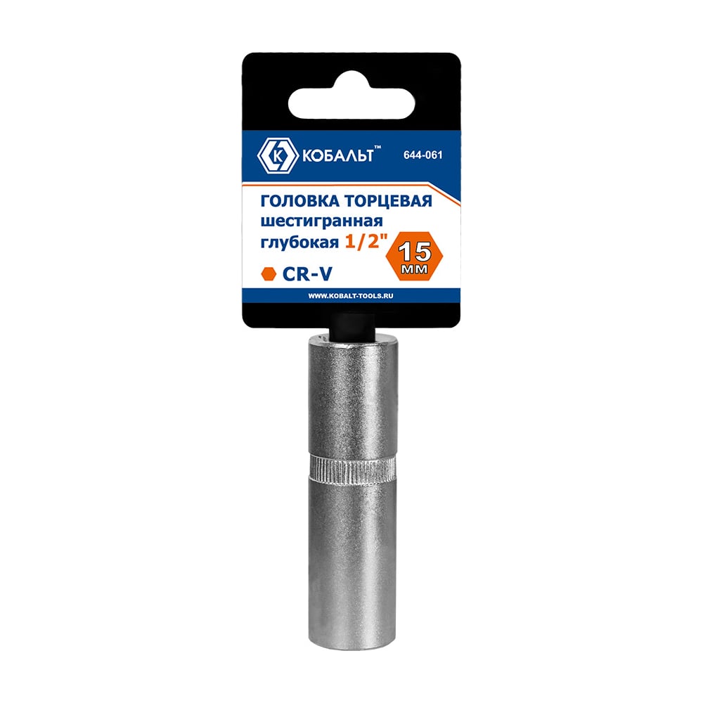 Глубокая торцевая головка КОБАЛЬТ 1/2, 15мм, Cr-V 644-061