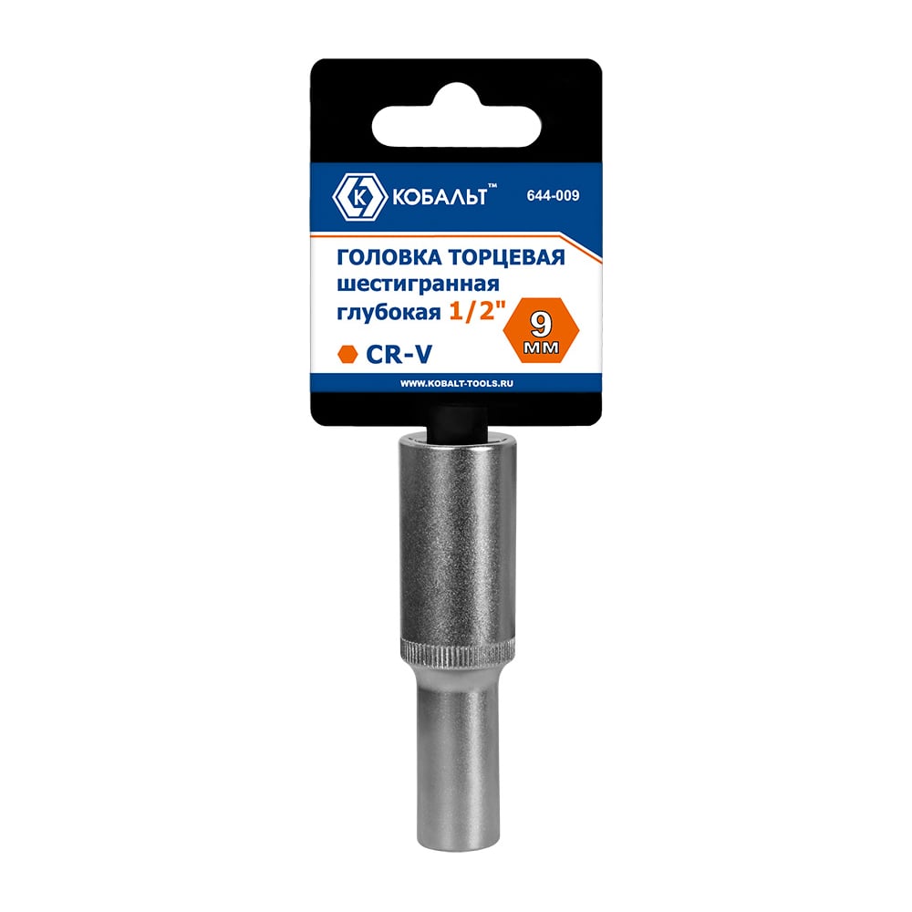 Глубокая торцевая головка КОБАЛЬТ 1/2, 9мм, Cr-V 644-009