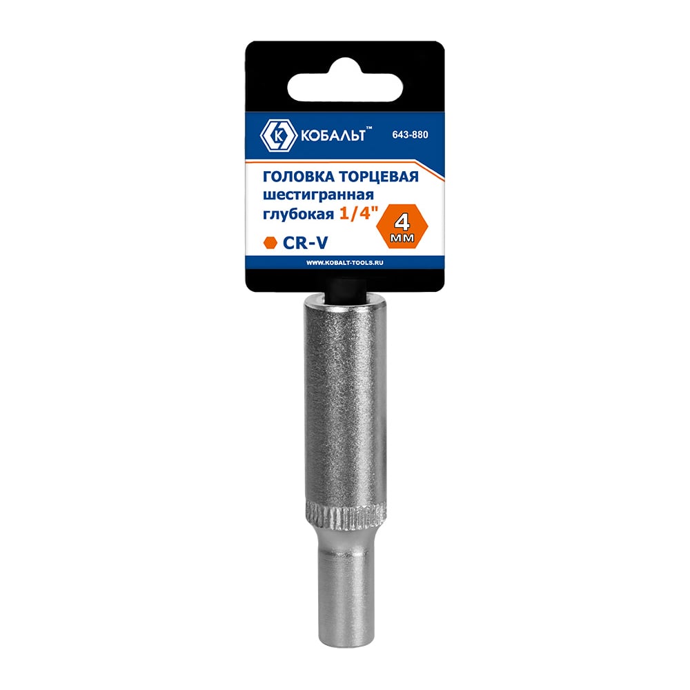 Глубокая торцевая головка КОБАЛЬТ 1/4, 4мм, Cr-V 643-880