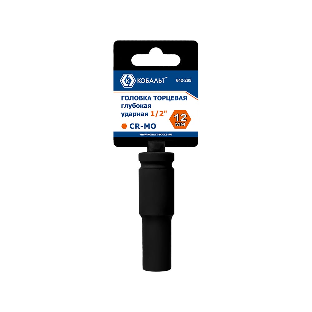Глубокая ударная торцевая головка 1/2, 12мм, Cr-Mo КОБАЛЬТ 642-265