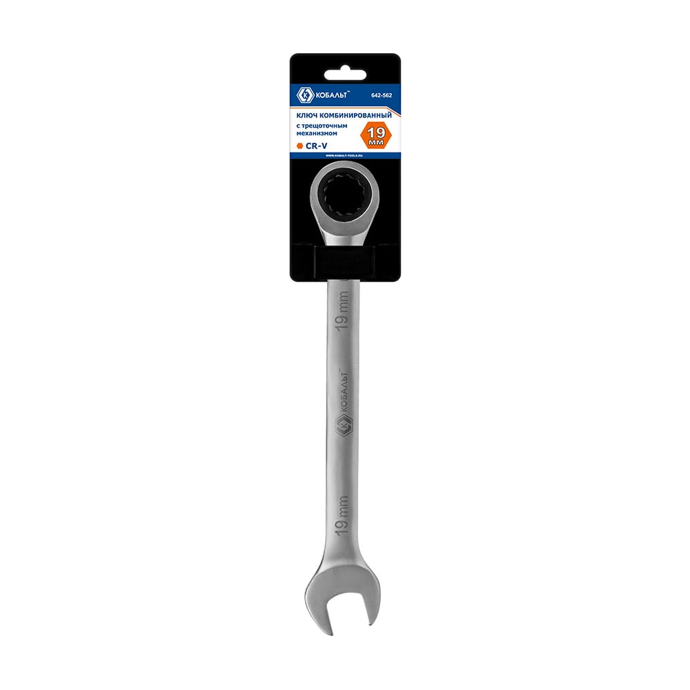 Комбинированный гаечный трещоточный ключ 19мм, Cr-V КОБАЛЬТ 642-562