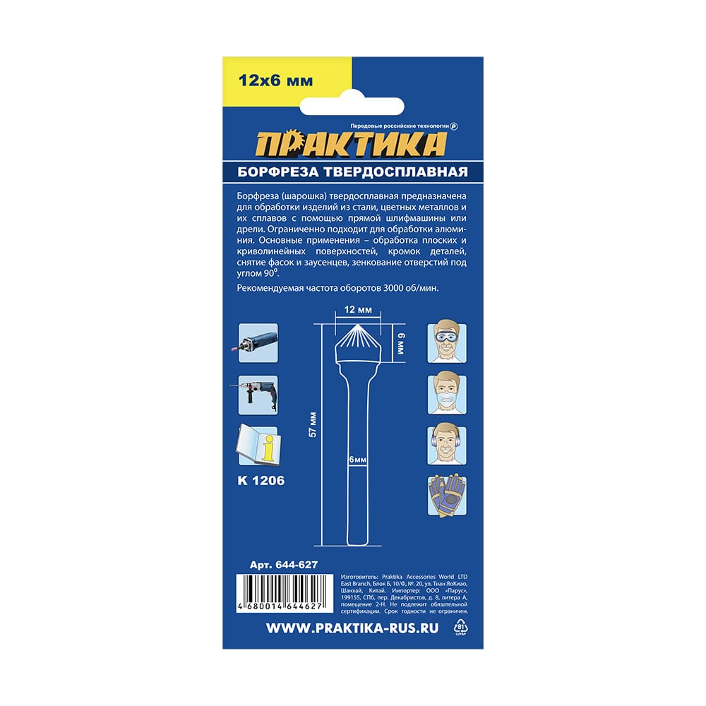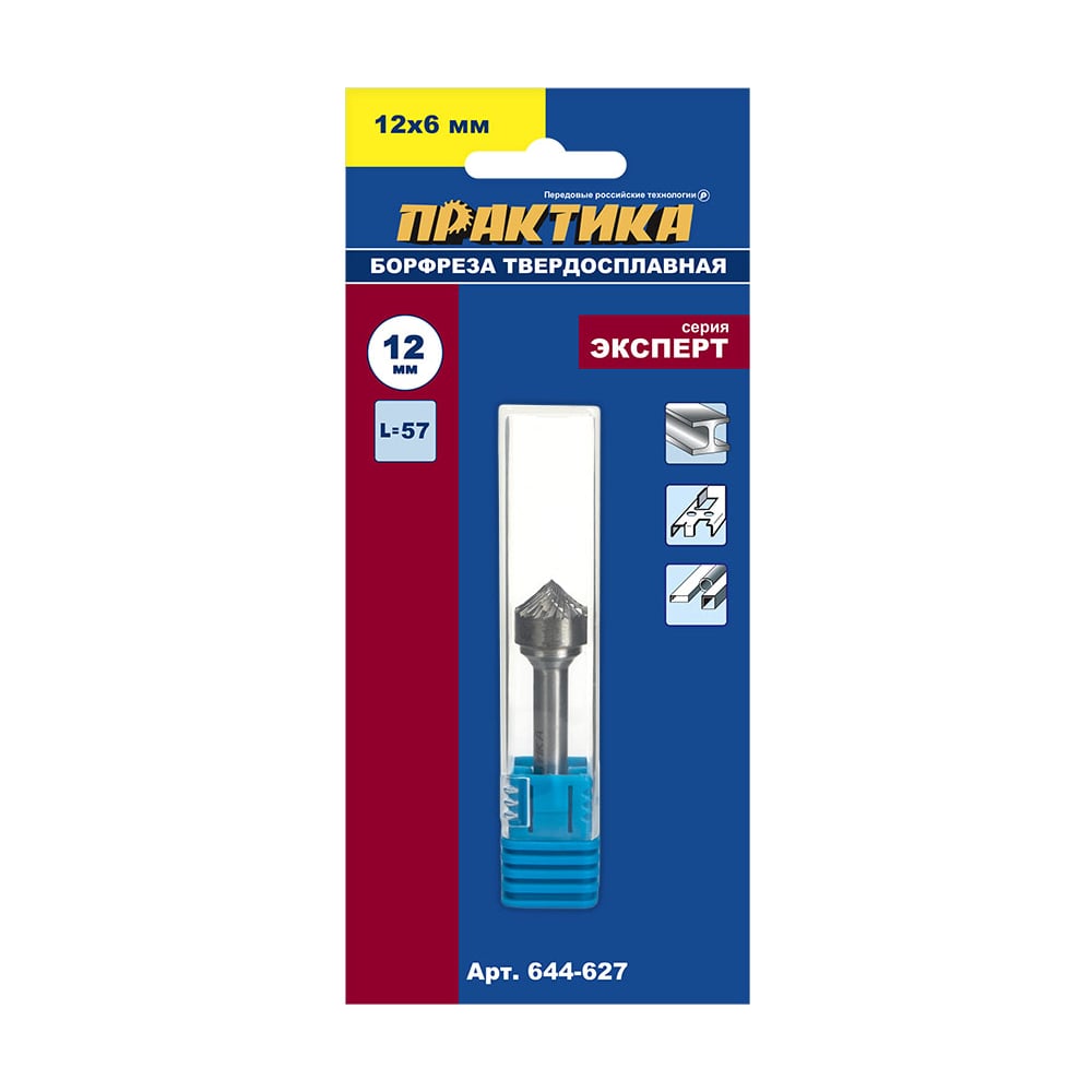 Фреза по металлу твердосплавная (12х6 мм; хвостовик 6 мм; зенкер 90 градусов) ПРАКТИКА 644-627