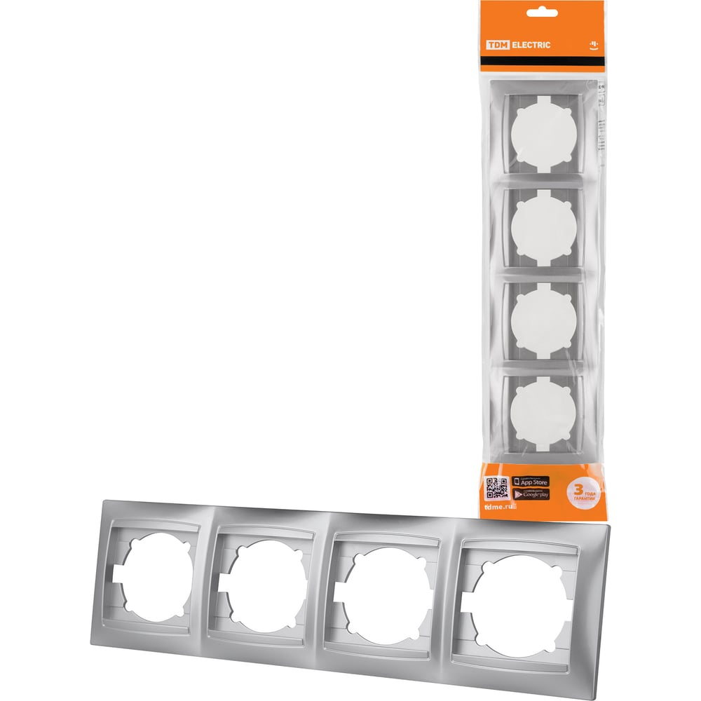 Рамка 4-х постовая горизонтальная TDM ELECTRIC серебристый металлик, серия "Лама" SQ1815-0232