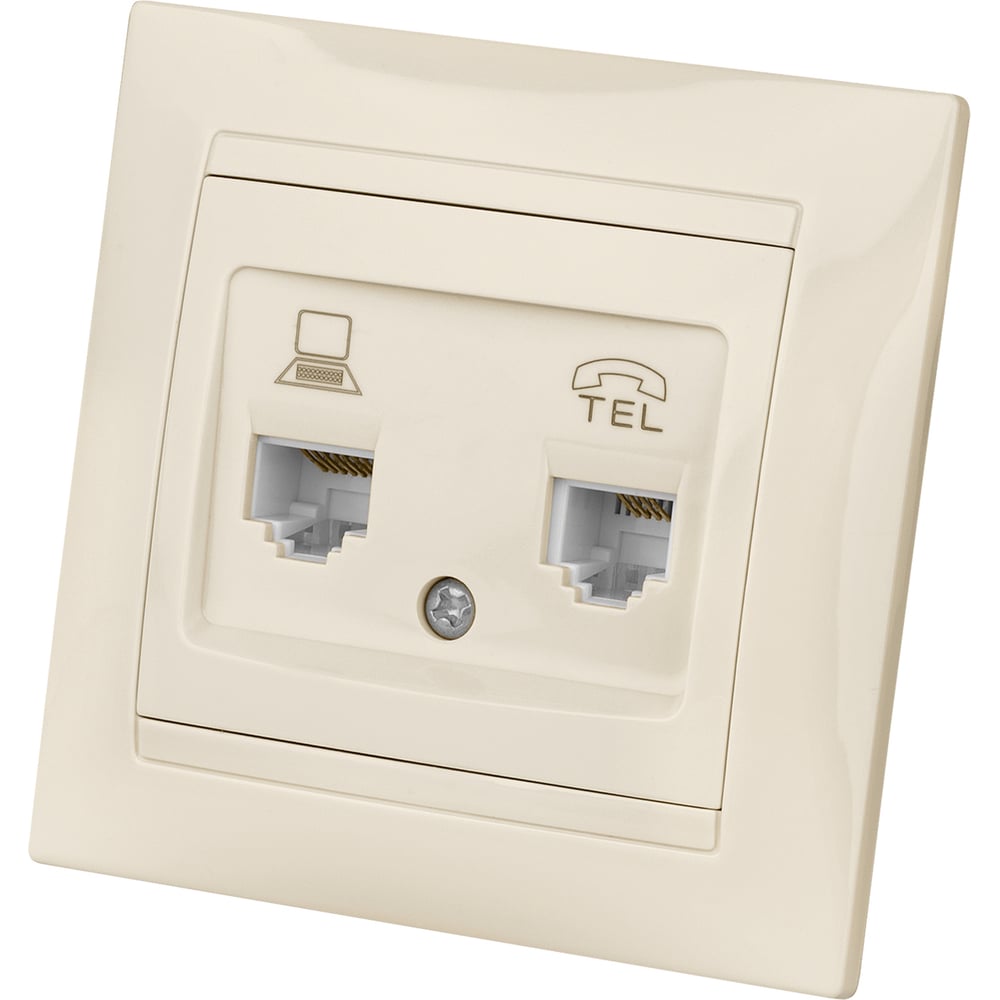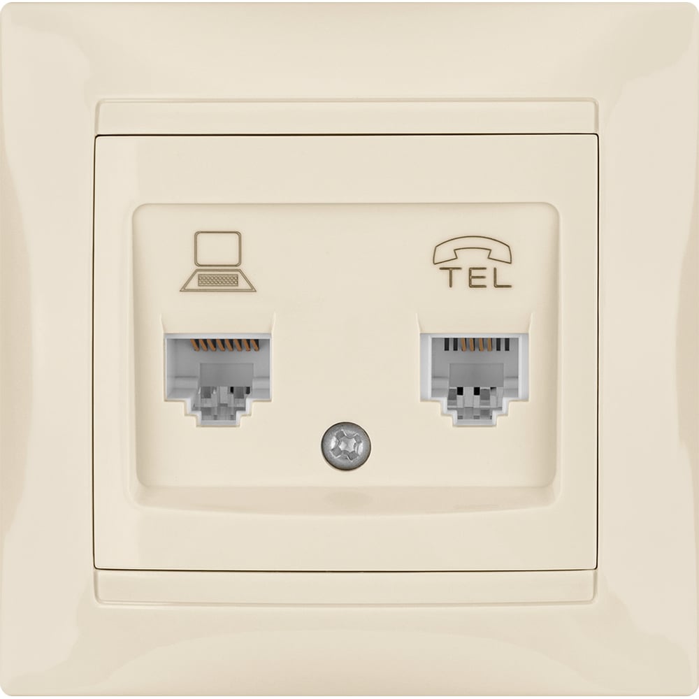 Розетка телефонная RJ11 + компьютерная RJ45, слоновая кость TDM ELECTRIC Лама SQ1815-0119