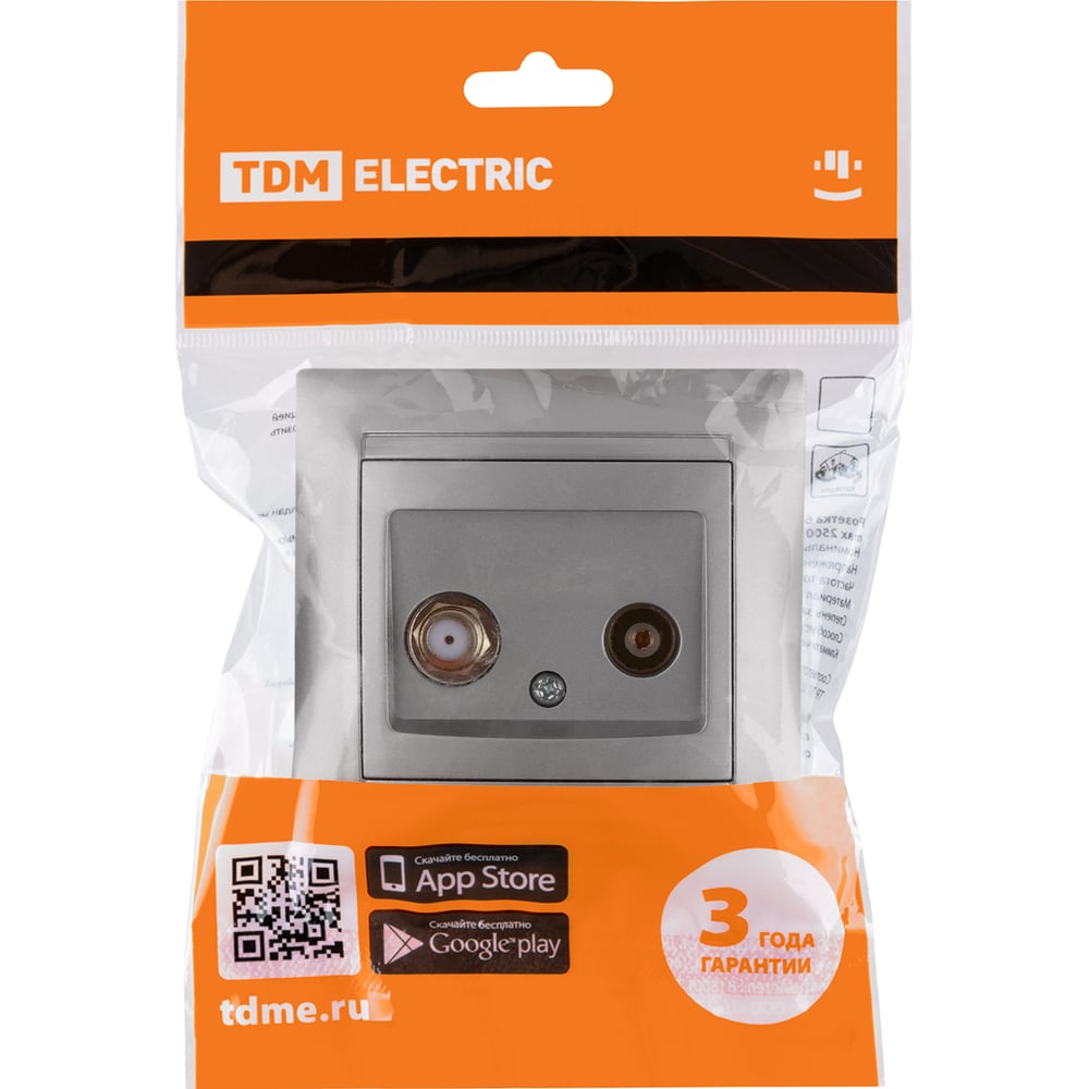 Розетка TV ("мама") + SAT (F-разъем) 0-2400МГц TDM ELECTRIC серебристый металлик, серия "Лама" SQ1815-0220