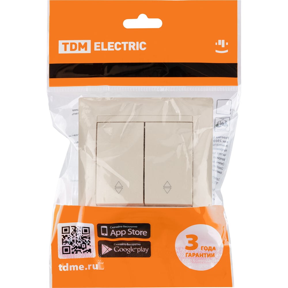 Проходной выключатель TDM ELECTRIC Лама слоновая кость двухклавишный SQ1815-0107