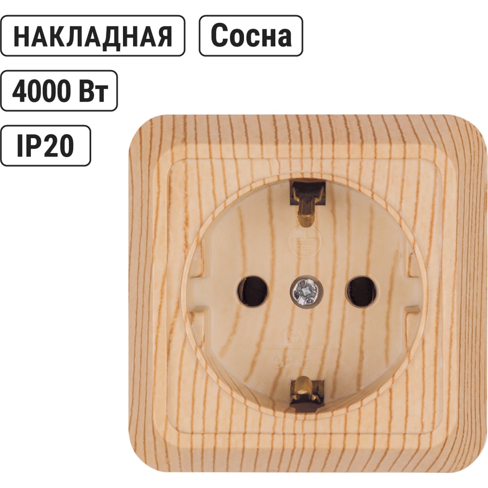 Розетка TDM ELECTRIC 2П+З открытой установки IP20 16А, сосна, серия "Ладога" SQ1801-0050