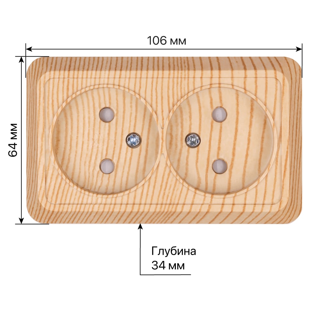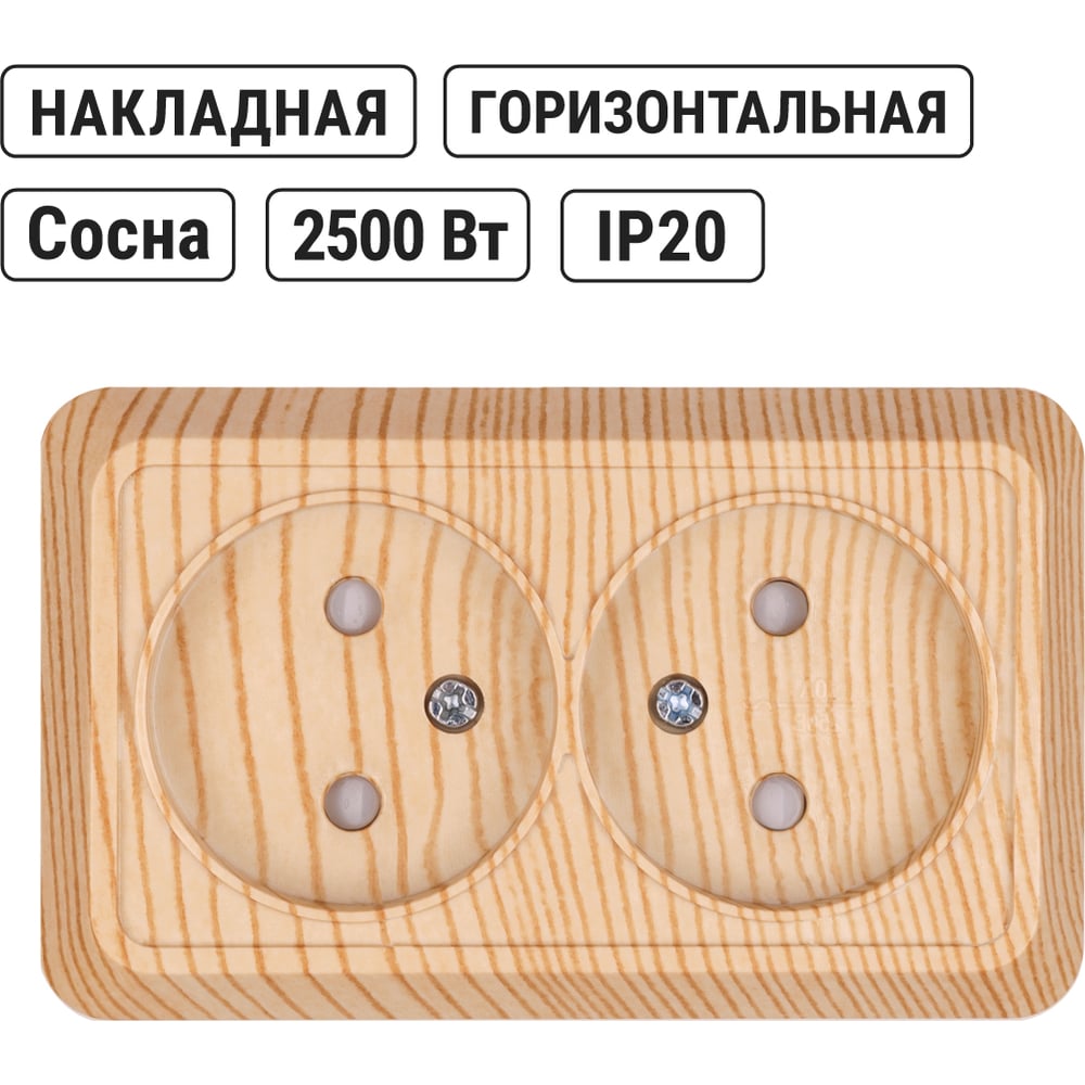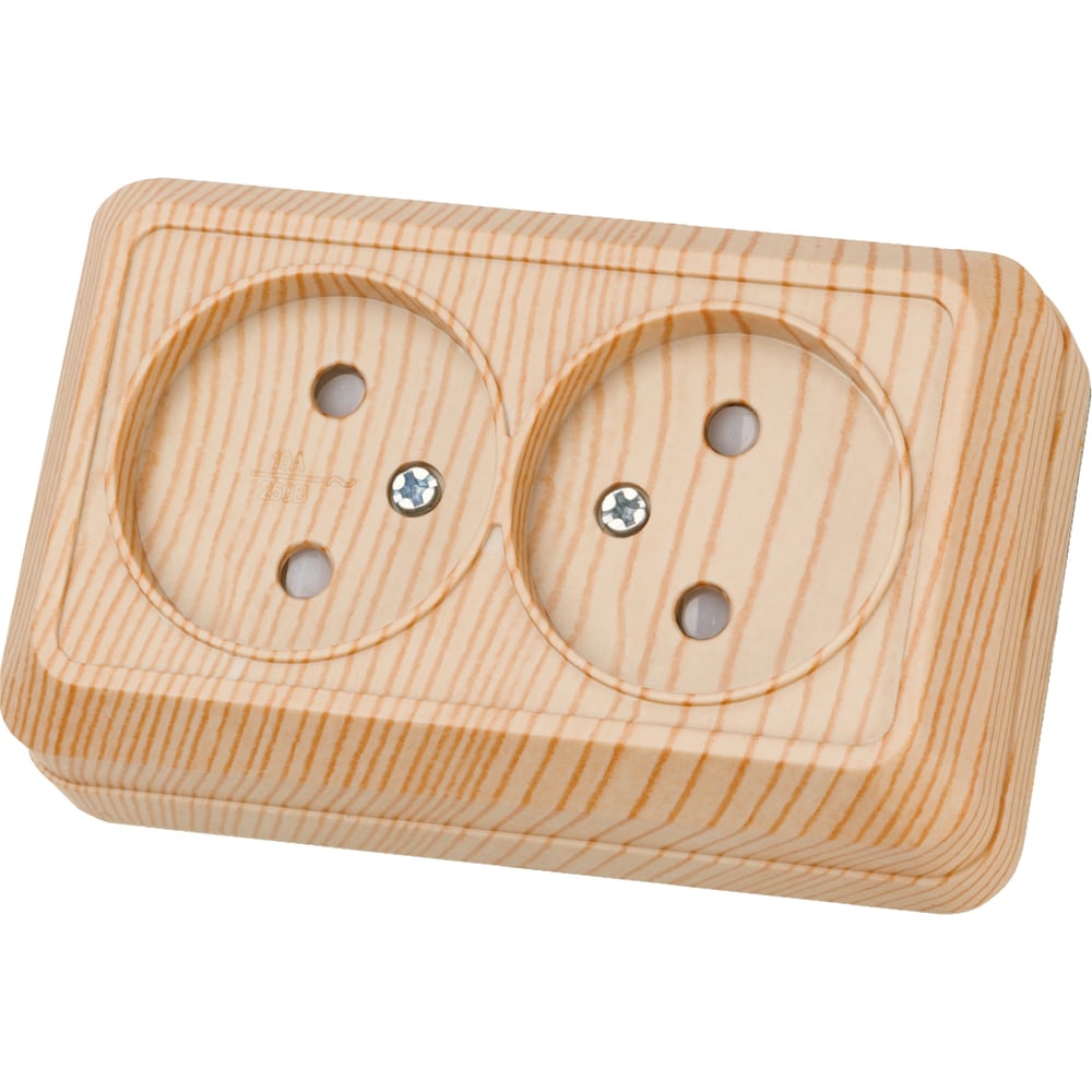 Розетка TDM ELECTRIC двойная 2П открытой установки с защитными шторками IP20 10А, сосна, серия "Ладога" SQ1801-0055
