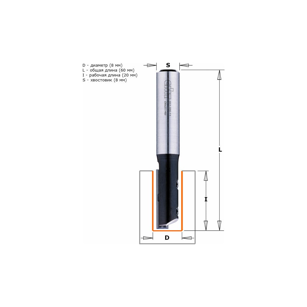 Фреза пазовая со сменным ножом (8x20 мм; хвостовик 8 мм; RH) CMT 651.080.11