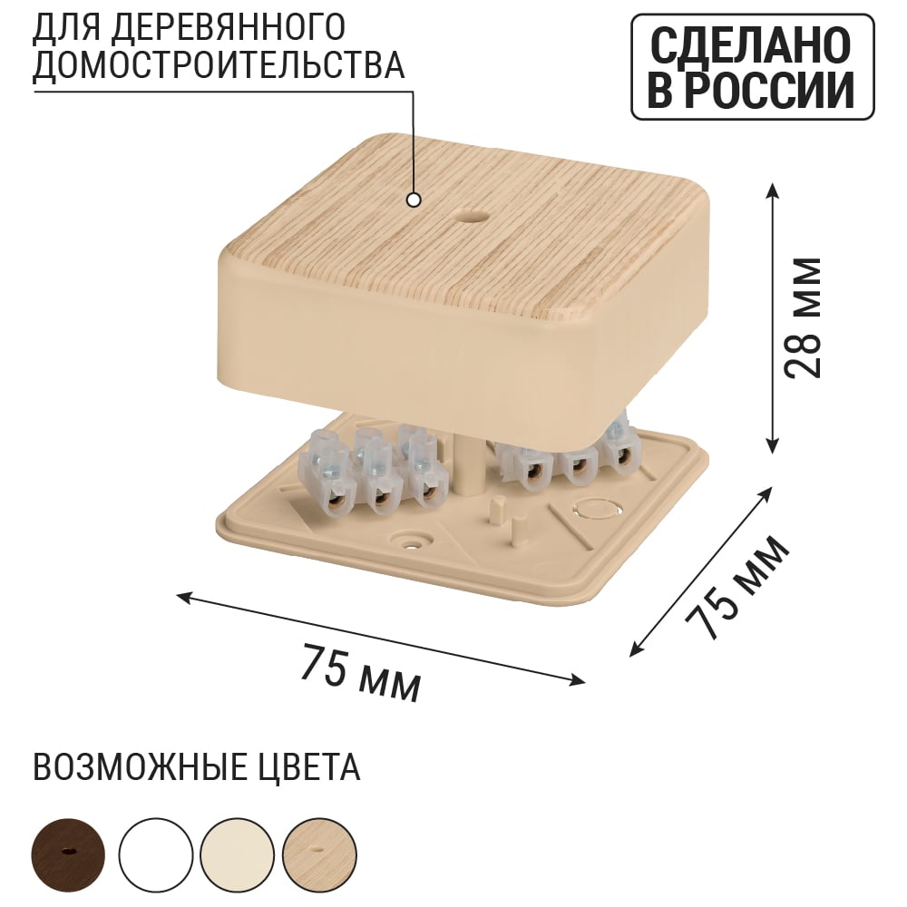 Коробка распределительная TDM ELECTRIC 75х75х28 ОП сосна, с клеммной колодкой, IP40 SQ1401-0406