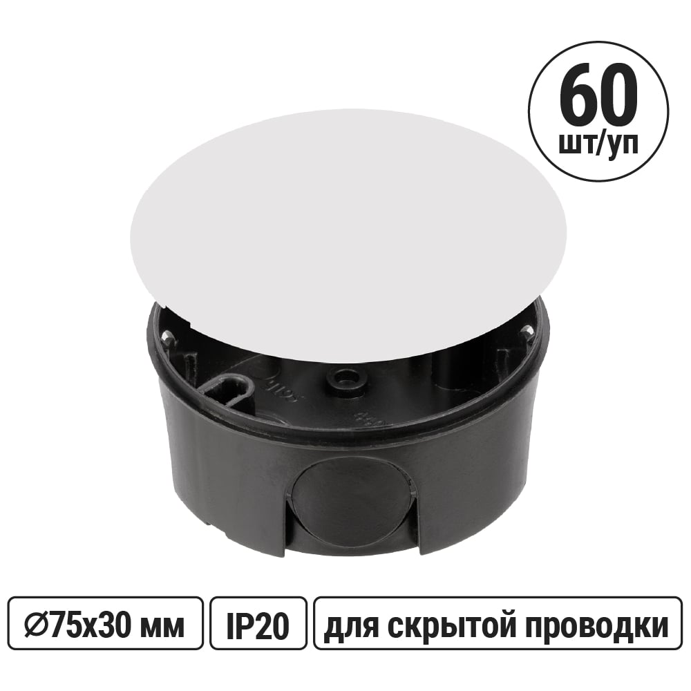 Коробка распределительная TDM ELECTRIC D75х30мм, крышка упаковка 60 штук SQ1402-0195
